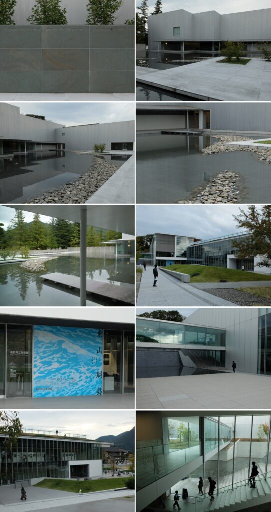 長野県立美術館を訪れました。東山魁夷館の低く抑えた開口から池越しに景色を臨む感じが何とも静謐で落ち着きます。本館のガラス張りの外壁部は透明感が高いのみならず、内部の活動がよく見えることが素敵でした。